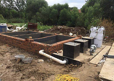 (5)污泥池:初沉池、二沉池的所有污泥均用空氣提至一體化設備的污泥池內進行好氧消化,污泥池的上清液回流至接觸氧化池內進行再處理,消化后剩余污泥很少,一般1-2年清理一次,清理方法可用吸糞車從污泥池的檢查孔伸入污泥池底部進行抽吸后外運即可。