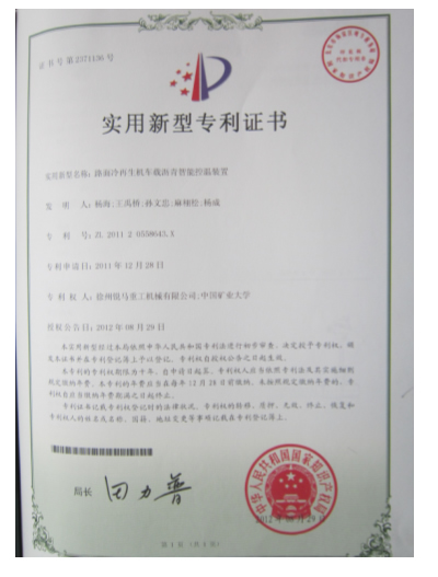 2012年8月29日,徐州銳馬重工機(jī)械有限公司又有一項實用新型專利獲得中華人民共和國國家知識產(chǎn)權(quán)局的審批通過。該項目由我公司與中國礦業(yè)大學(xué)聯(lián)合研究,專利權(quán)由雙方共有。