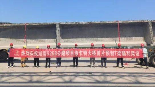 近日,湖南S253公路項(xiàng)目涂乍特大橋首片預(yù)制T梁成功架設(shè),標(biāo)志著項(xiàng)目預(yù)制梁架設(shè)工作已全面開展,推動項(xiàng)目施工進(jìn)度沖上新臺階。